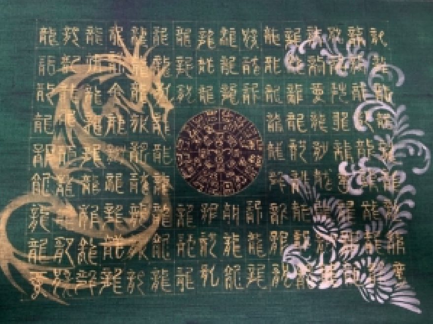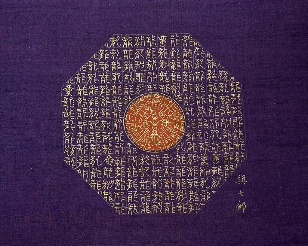 ※銀で描いた百龍の上から大きなフトマニを金書きします