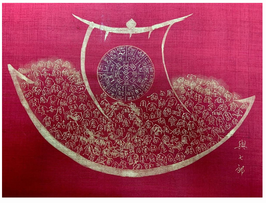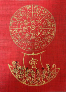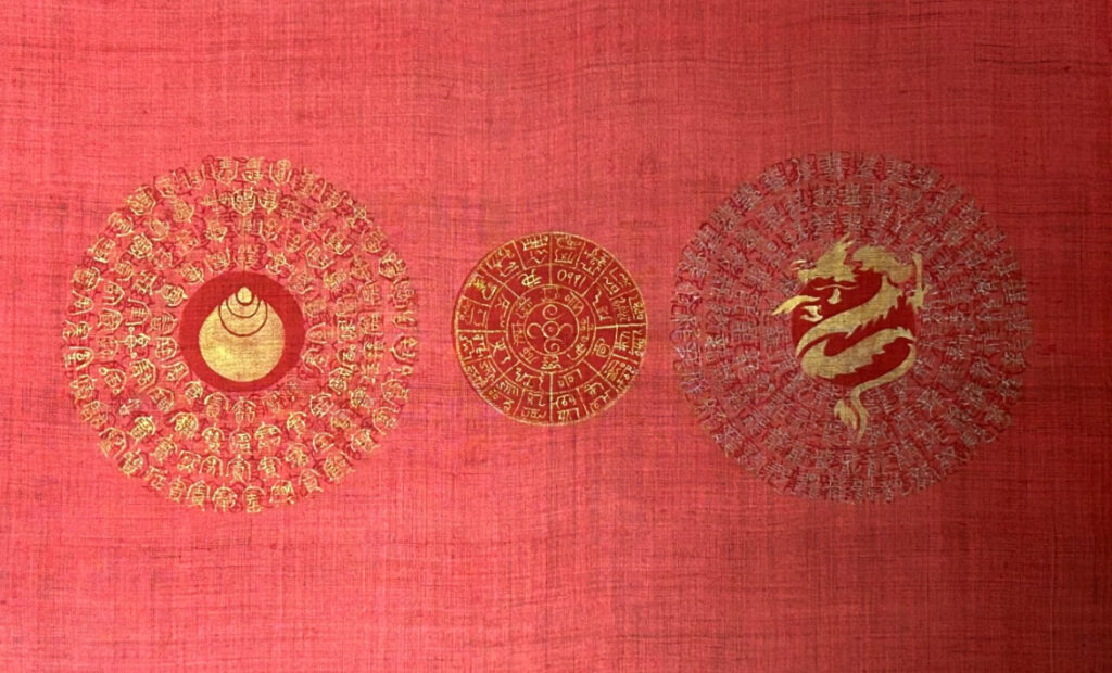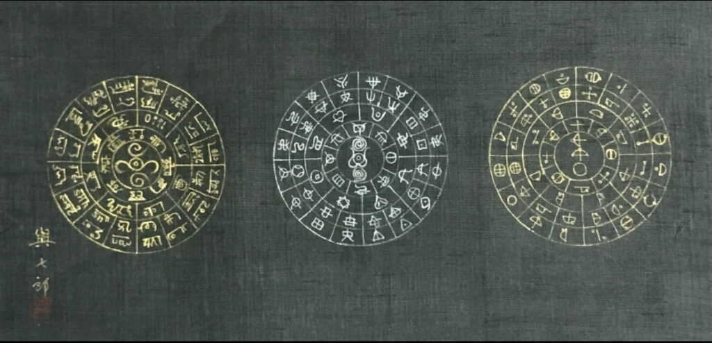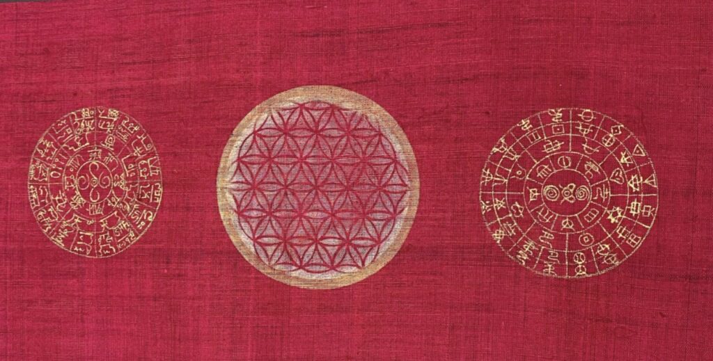 ※中央に金銀でデザインしたフラワーオブライフ。左右にフトマニを配置。