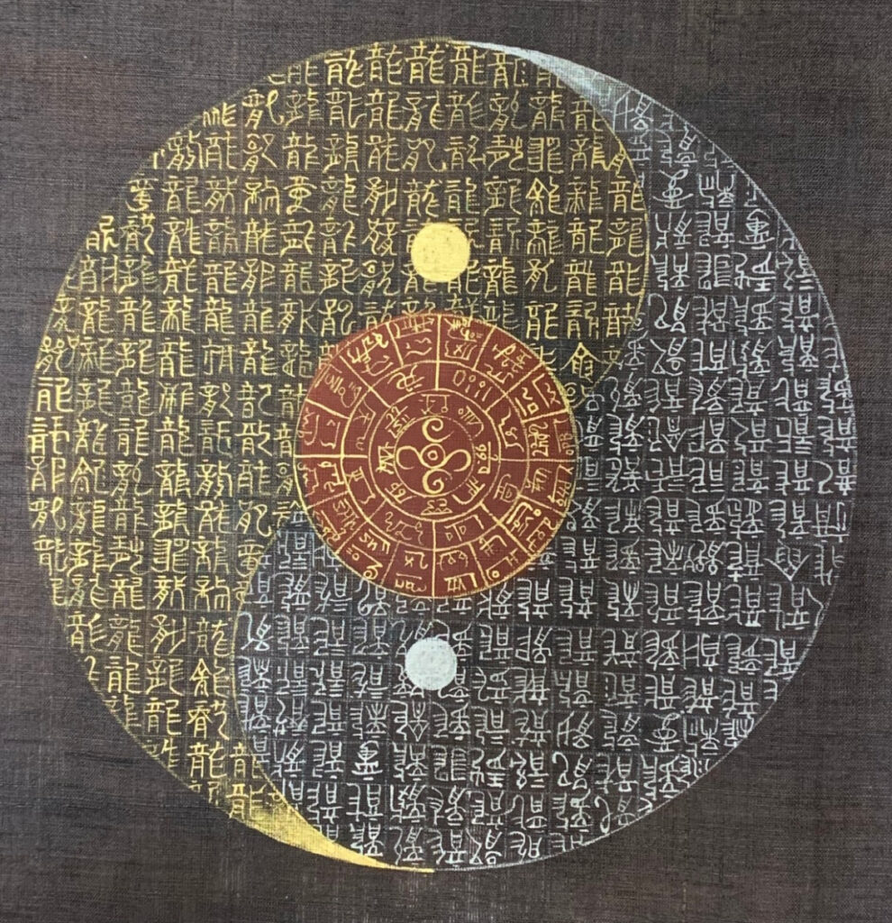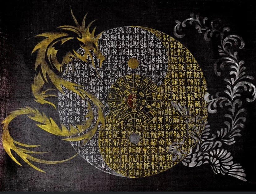 ※※龍勾玉太極図に龍と鳳のデザインを金銀で配置