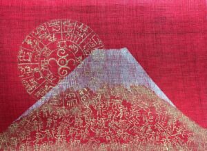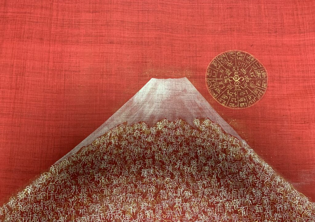 ※縁起の良い赤富士の中にたくさんの龍文字を入れます